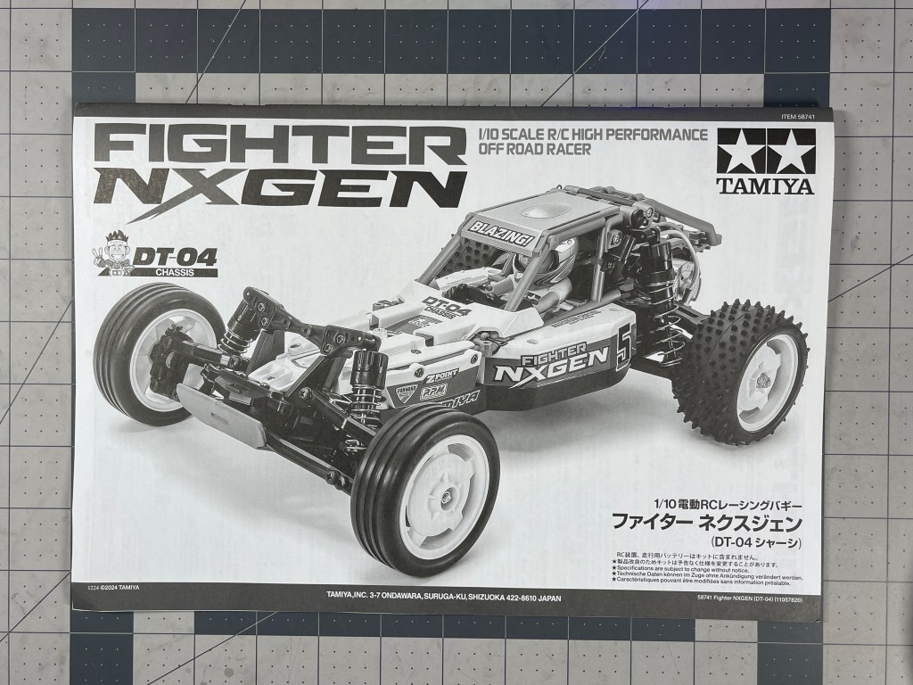 The Tamiya Fighter NXGEN is a new R/C model assembly kit inspired by U.S. single-seater racing buggies. It features the DT-04 chassis, a rear-wheel drive buggy that offers easy assembly and improved off-road performance compared to previous DT models. The chassis shares components with the DT-02 and DT-03 models, allowing for a variety of setup options and part compatibility. The modular body is made from injection-molded white polycarbonate, simplifying assembly for both beginners and experienced hobbyists, requiring only decal application without painting.