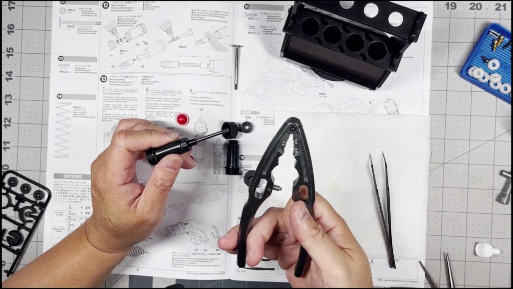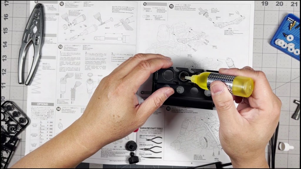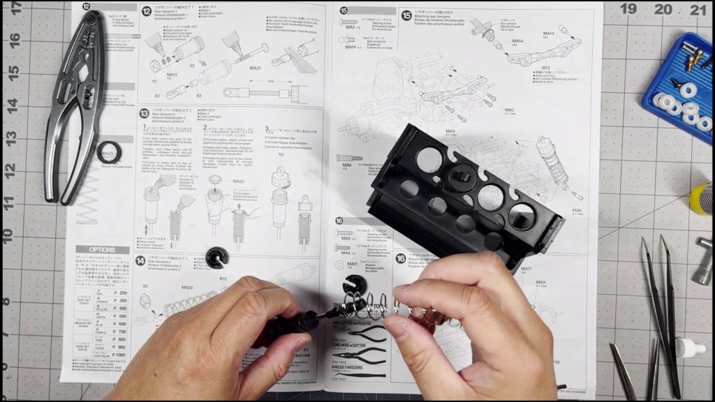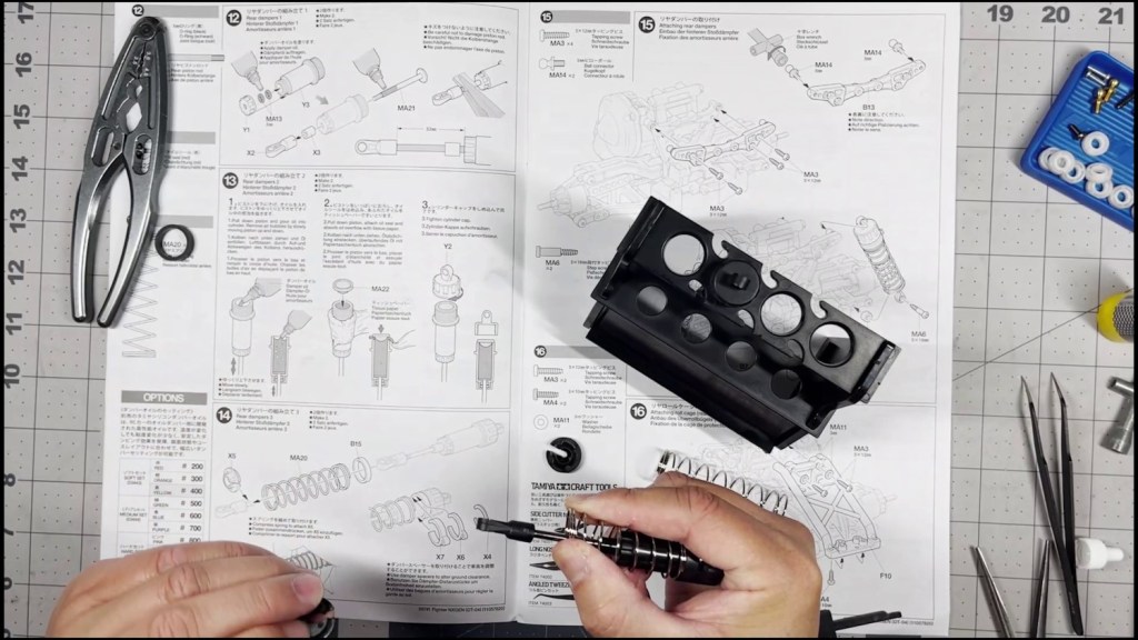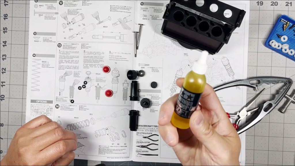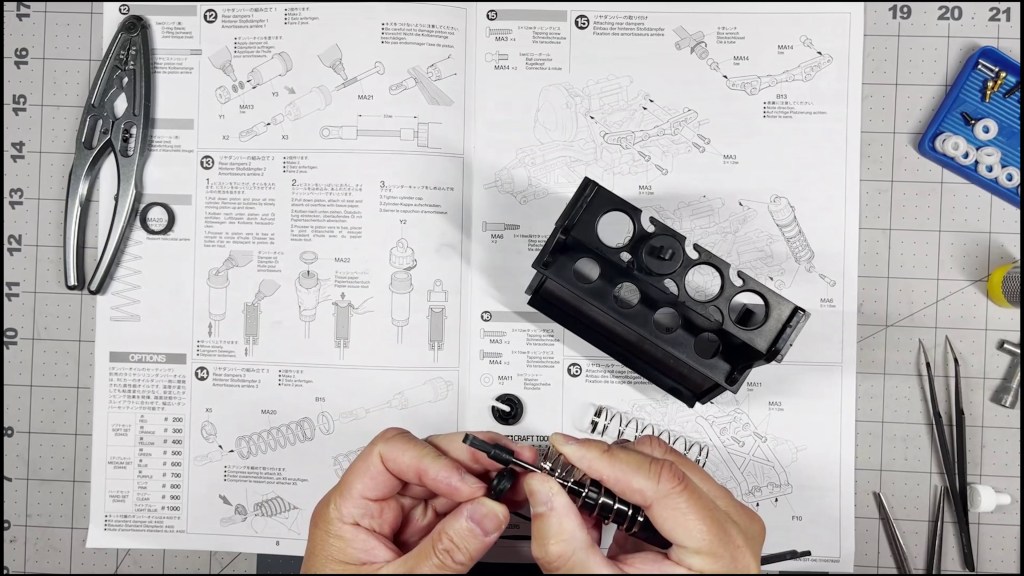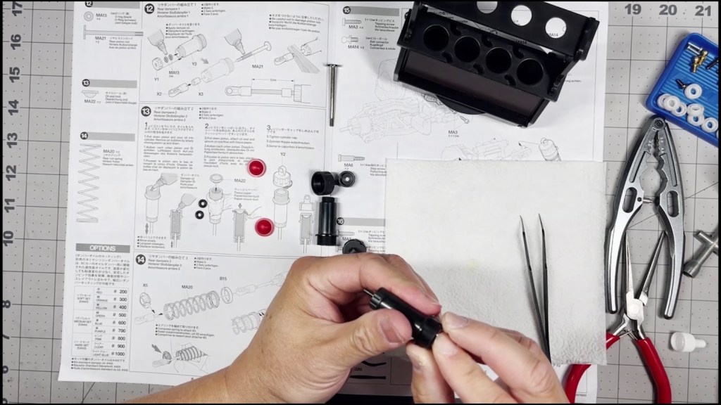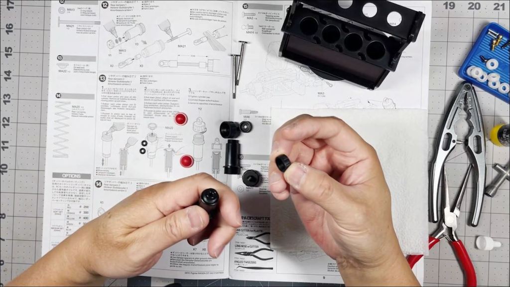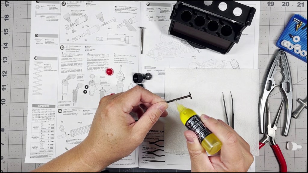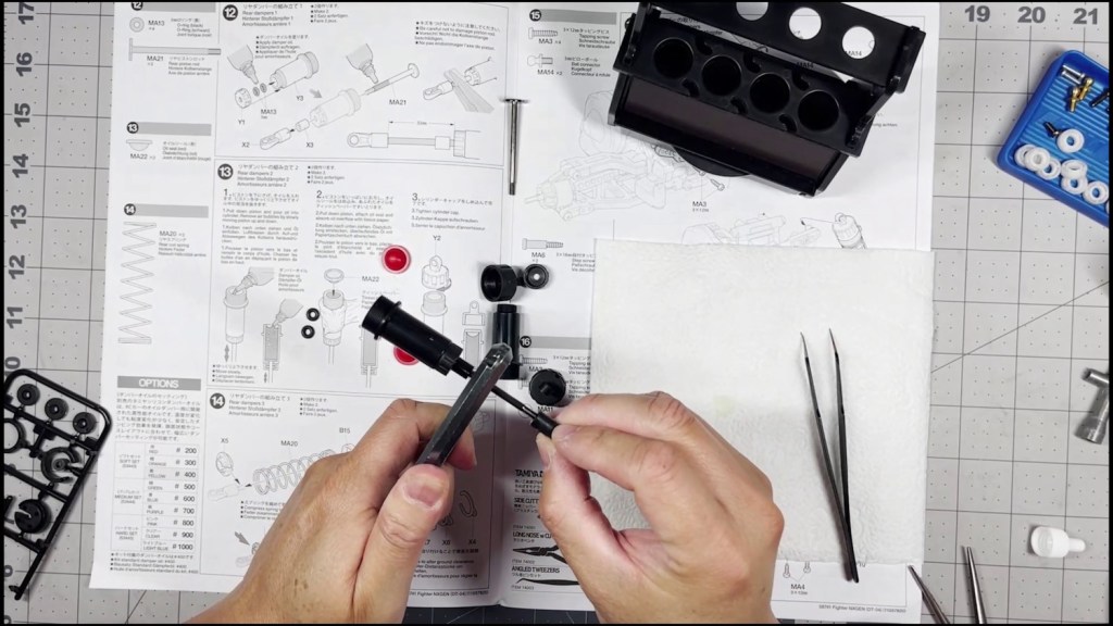 If you have never built a set of Tamiya oil-filled dampers before, this could be your guide. This set that came with the kit is very basic. It shouldn’t give you any trouble if you follow these steps.