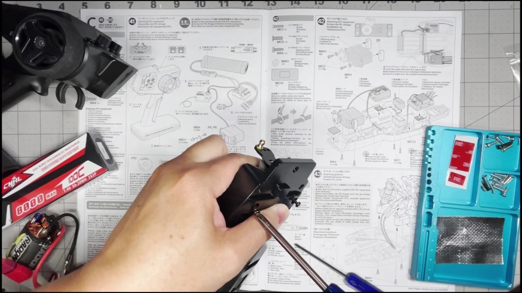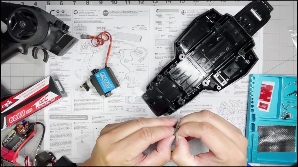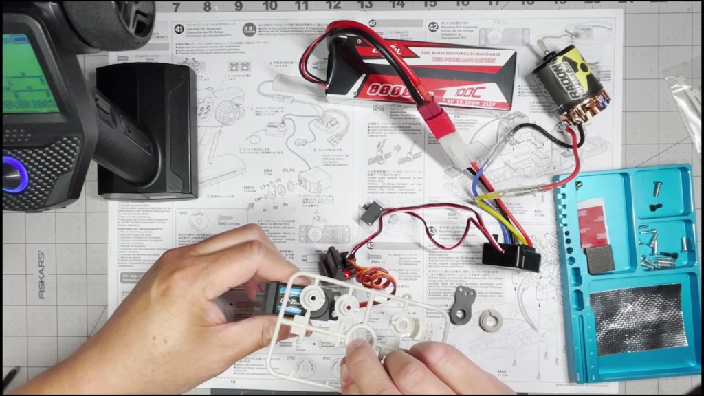We are going to install the remaining electronics to the chassis. That includes the servo, electronic speed control (ESC) and receiver. We will leave affiliate links for electronics used in this article (or equivalent) in the footnotes.