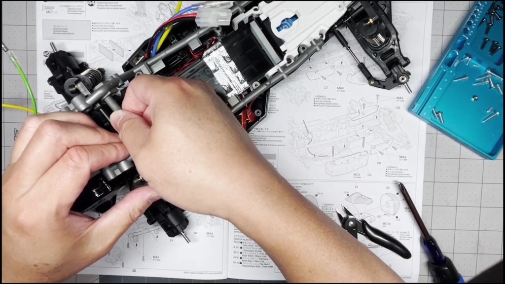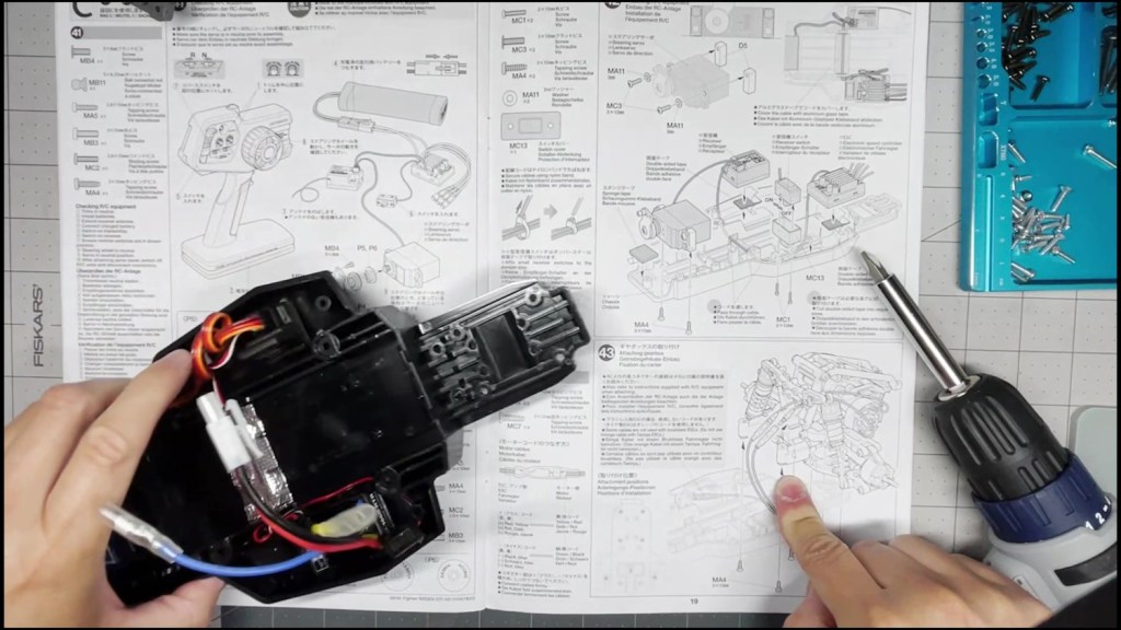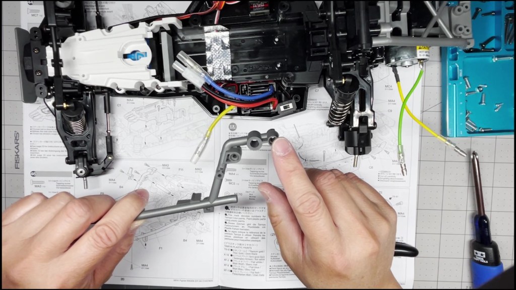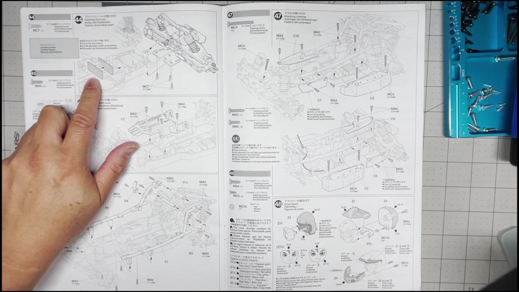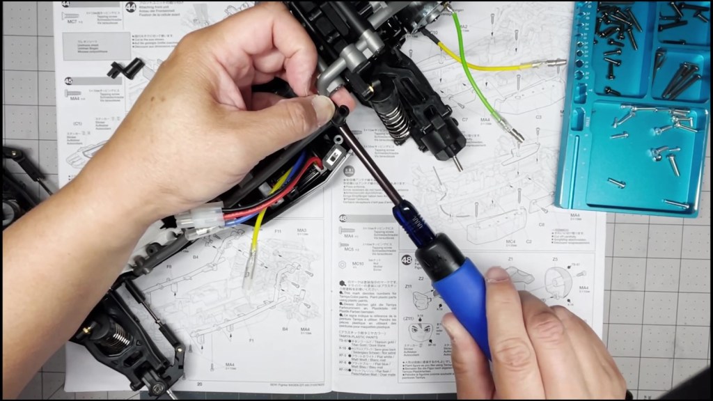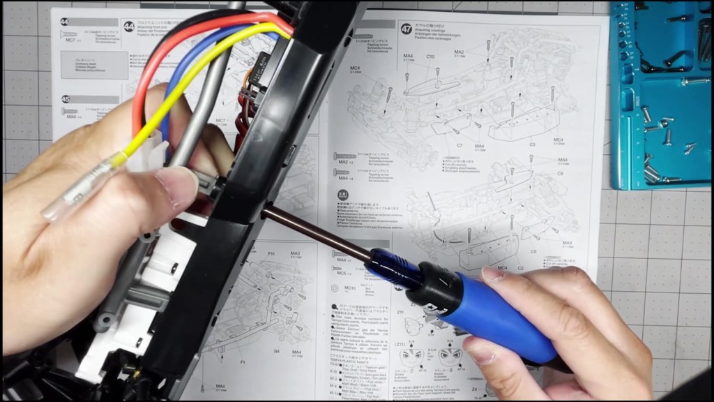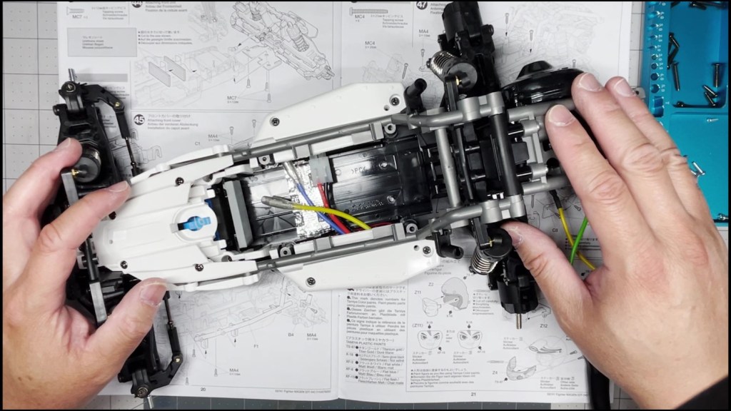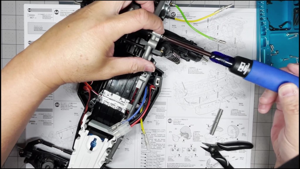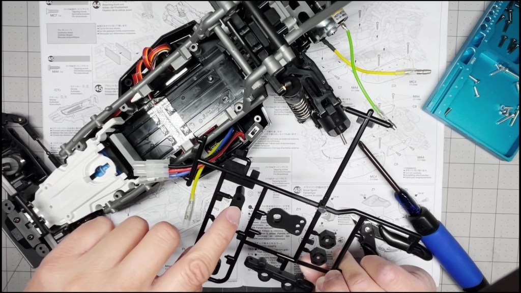 We are going to attach the front and rear ends to the tub chassis. We will also attach the roll cage and several body panels. There are a lot of screws in the part of the build. An electric screwdriver is recommended.