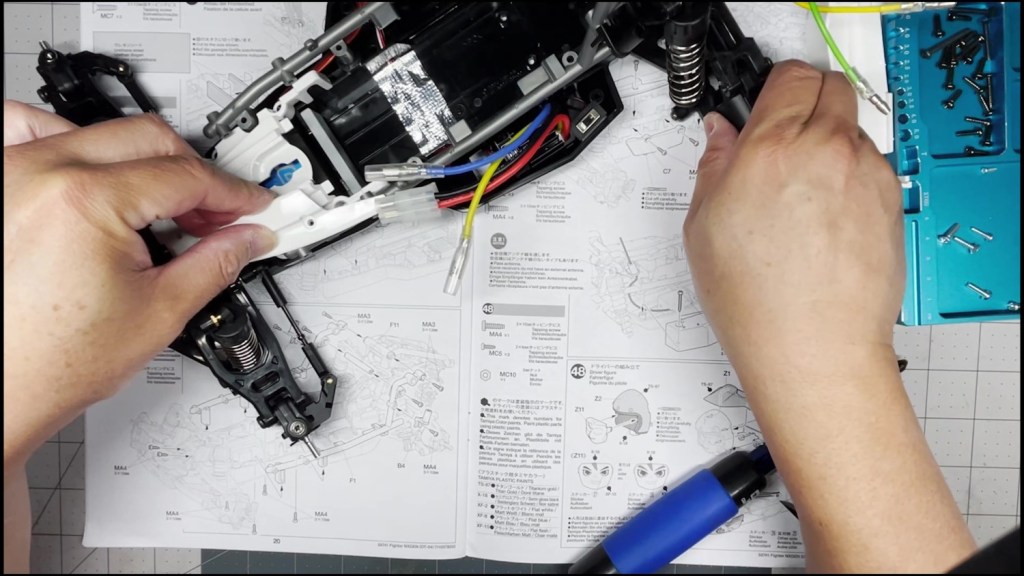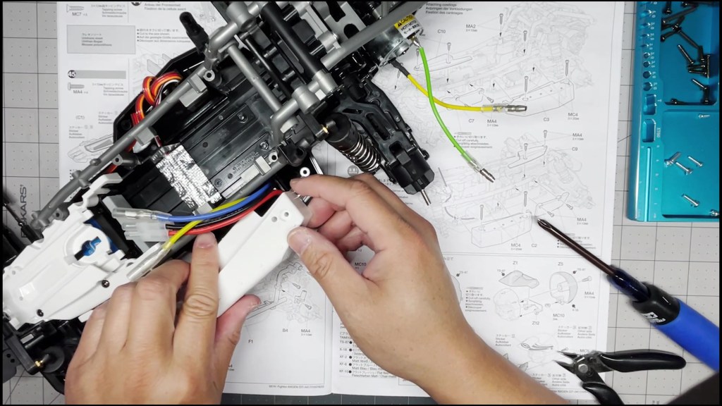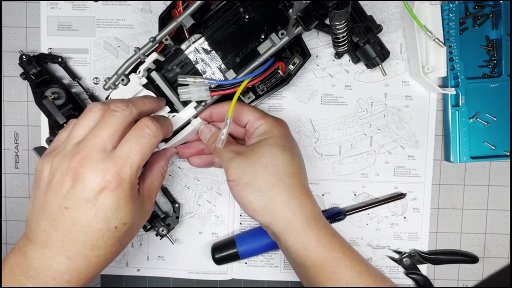 The final step is to connect the ESC to the motor. Blue to Green and Yellow to Yellow. That’s it. We are done with the chassis part of the build. Thanks for reading.